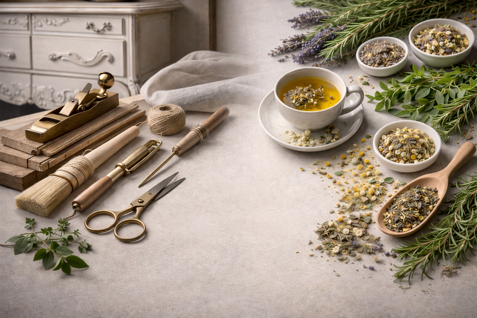Alongside our furniture restorations, we create handcrafted herbal tea blends made from thoughtfully selected botanicals. Our teas are designed to nourish the body, comfort the spirit, and reconnect you with the natural healing traditions of herbs.